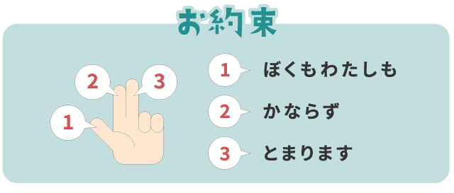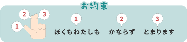 毎月、3歳以上児さんで一緒に交通安全指導を行います。 「道を横断するとき、必ず止まり、車が来ていない、車が止まったのを確認してから渡りましょう」を年間目標に (1)ぼくもわたしも(2)かならず(3)とまります」を合言葉として信号、標識、横断などの内容を園庭を道路に見立てたり、 園外の住宅地の道路を歩いたりと楽しく学んでいます。
